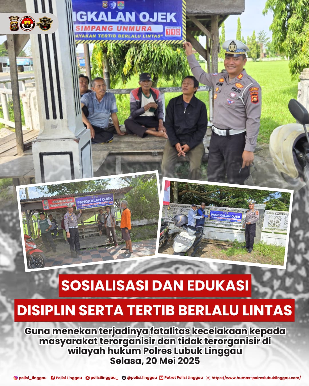 Lubuk Linggau, 20 Mei 2025 — Dalam upaya menekan angka fatalitas kecelakaan lalu lintas, Kepala Satuan Lalu Lintas (Kasat Lantas) Polres Lubuk Linggau, AKP Marjuni melaksanakan kegiatan sosialisasi dan edukasi tentang disiplin serta tertib berlalu lintas kepada masyarakat, baik yang terorganisir maupun tidak terorganisir.