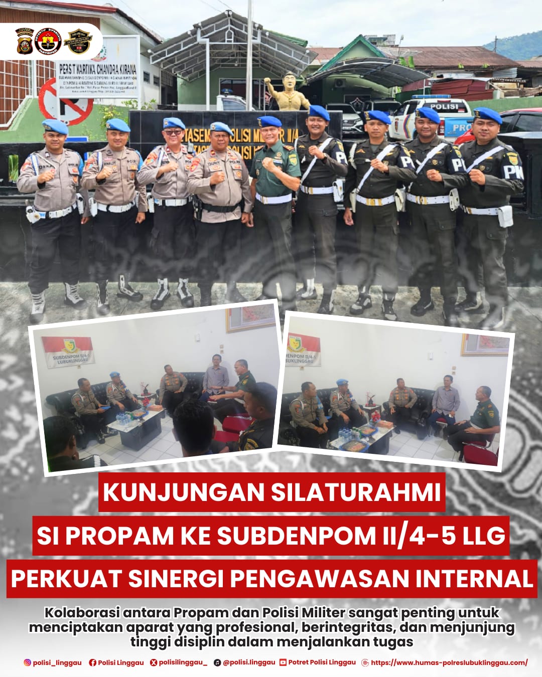 Hal ini dijelaskan oleh Kapolres Lubuk Linggau Polda Sumatera Selatan, AKBP Adithia Bagus Arjunadi, melalui Kasi Propam Iptu Gurit. Menurutnya, kunjungan ini merupakan bagian dari langkah strategis dalam membangun sinergitas dan koordinasi antara dua institusi penegak hukum, yakni Polri dan TNI, khususnya dalam bidang pengawasan internal.