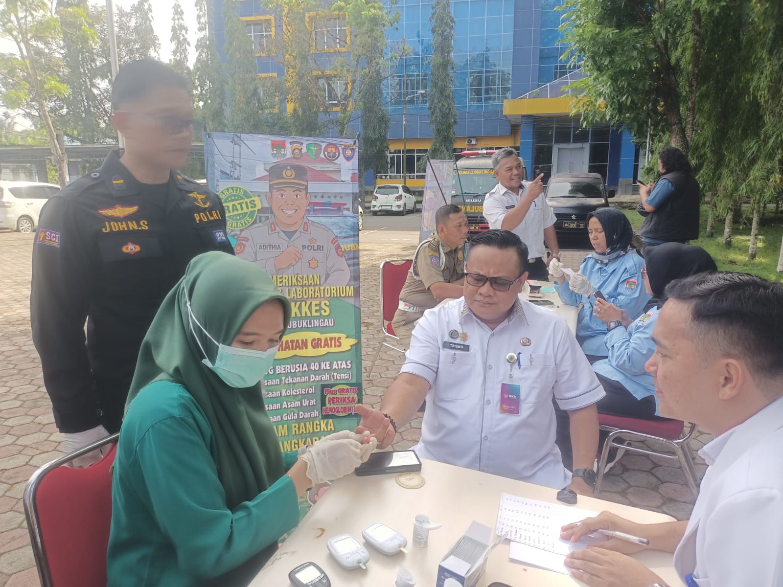 Adapun jenis layanan pemeriksaan kesehatan yang diberikan secara gratis meliputi pengecekan tekanan darah, pemeriksaan kadar gula darah, kolesterol, dan asam urat. Selain menyasar Aparatur Sipil Negara (ASN) di lingkungan Pemerintah Kota Lubuk Linggau, pemeriksaan kesehatan juga dilakukan terhadap pengemudi ojek online (ojol) yang sedang beraktivitas di sekitar area perkantoran.
