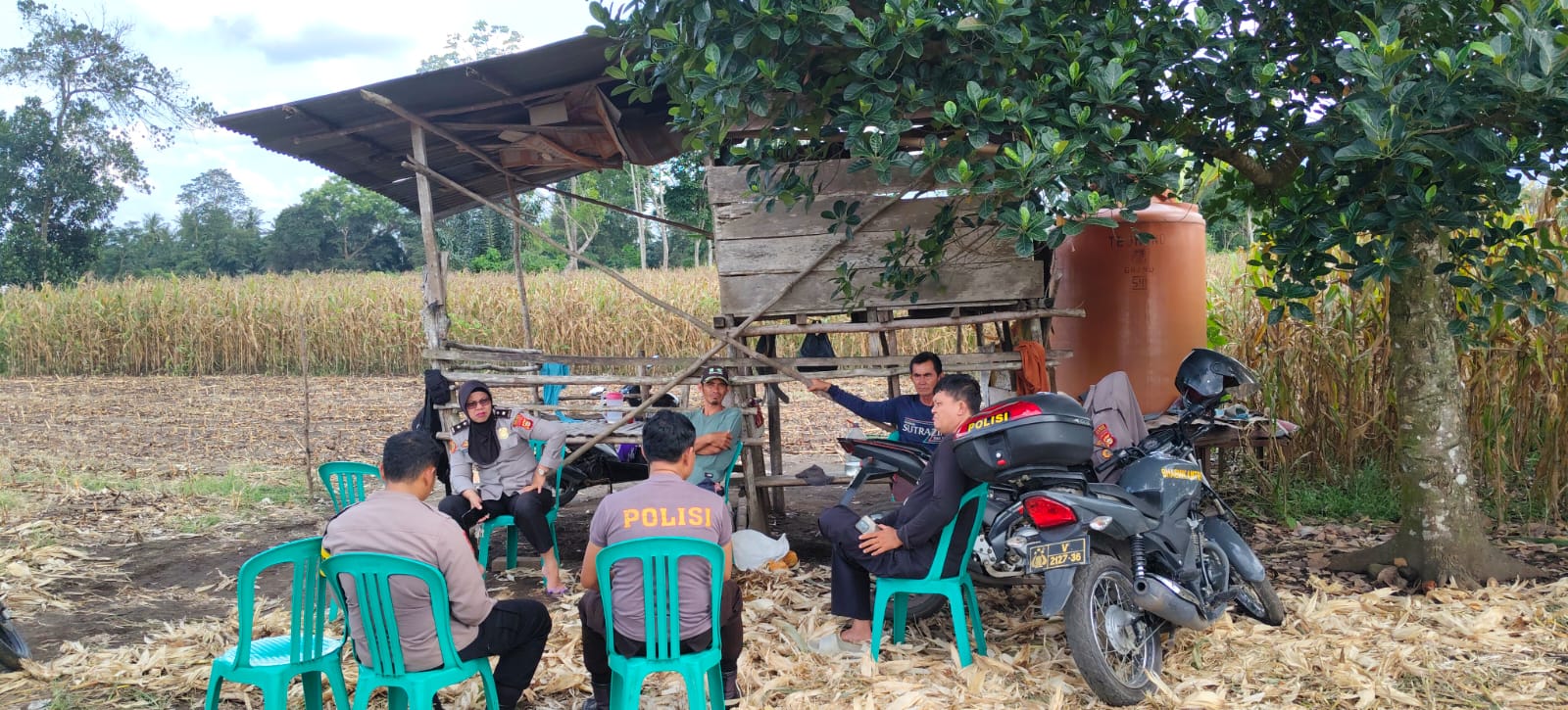Di lokasi, Kompol Ermi berdialog langsung dengan para petani untuk melihat sejauh mana kendala dan perkembangan di lapangan sejak benih mulai ditanam.