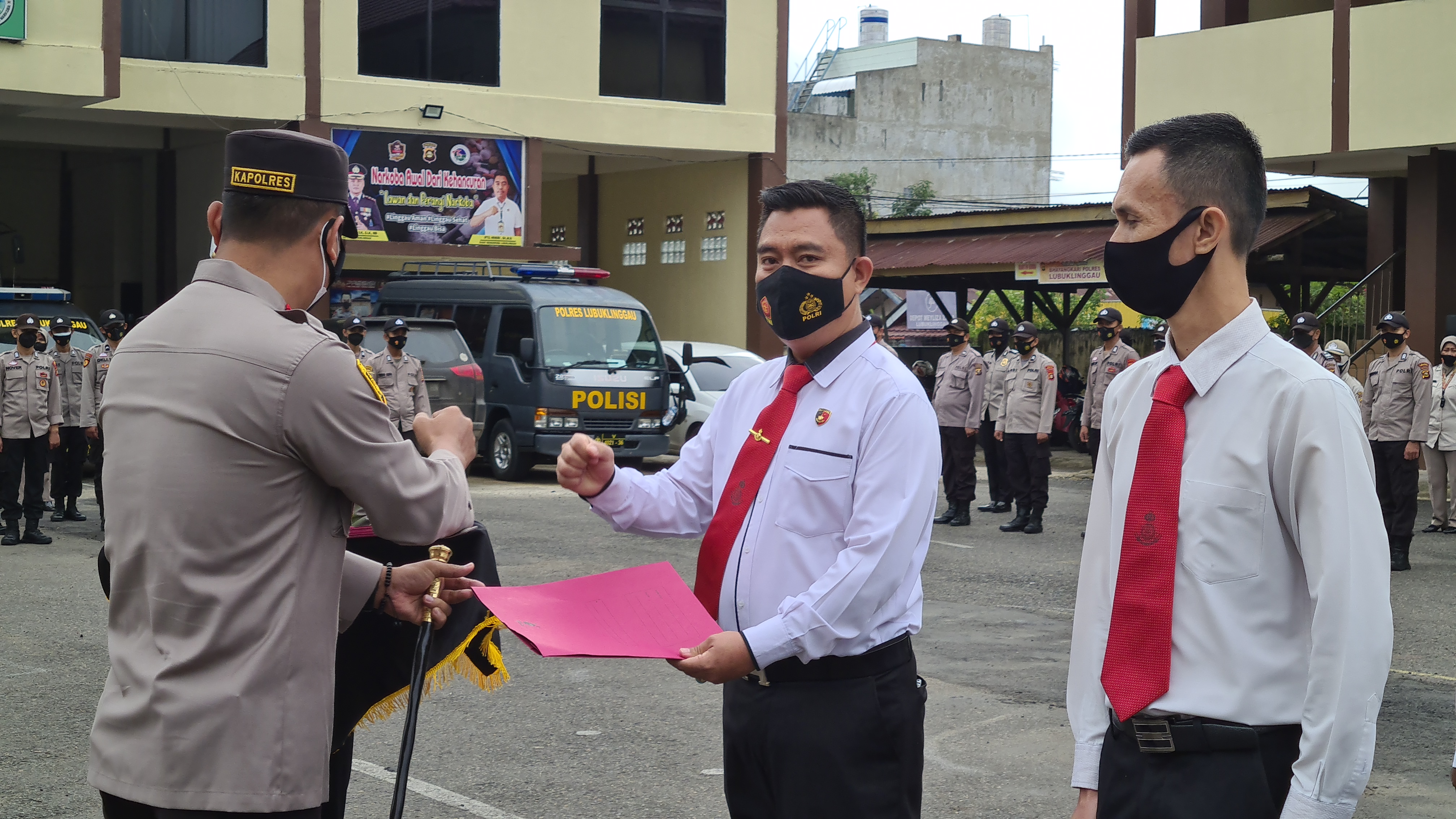 Humas Polres Lubuklinggau - Sumsel Polres Lubuklinggau menggelar apel pemberian penghargaan kepada Personel yang berprestasi dalam pelaksanaan tugas kepolisian di lingkungan Polres Lubuklinggau bertempat di lapangan apel Mapolres Lubuklinggau, Jumat (18/12/21)