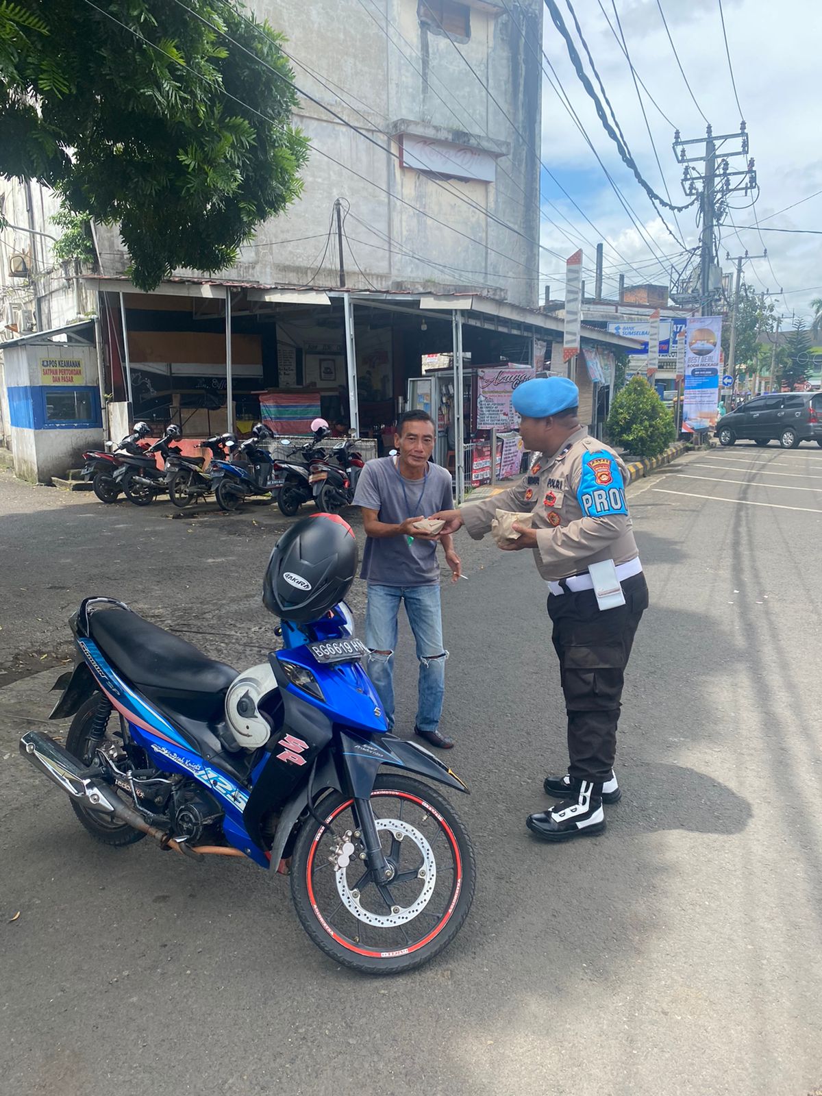 Seperti yang dilaksanakan oleh Sipropam Polres Lubuklinggau Polda Sumsel, memberikan makanan gratis pada masyarakat pengendara dan pengguna jalan di seputaran Mako Polres Lubuklinggau sembari berpatroli, Sabtu (26/11/2022)