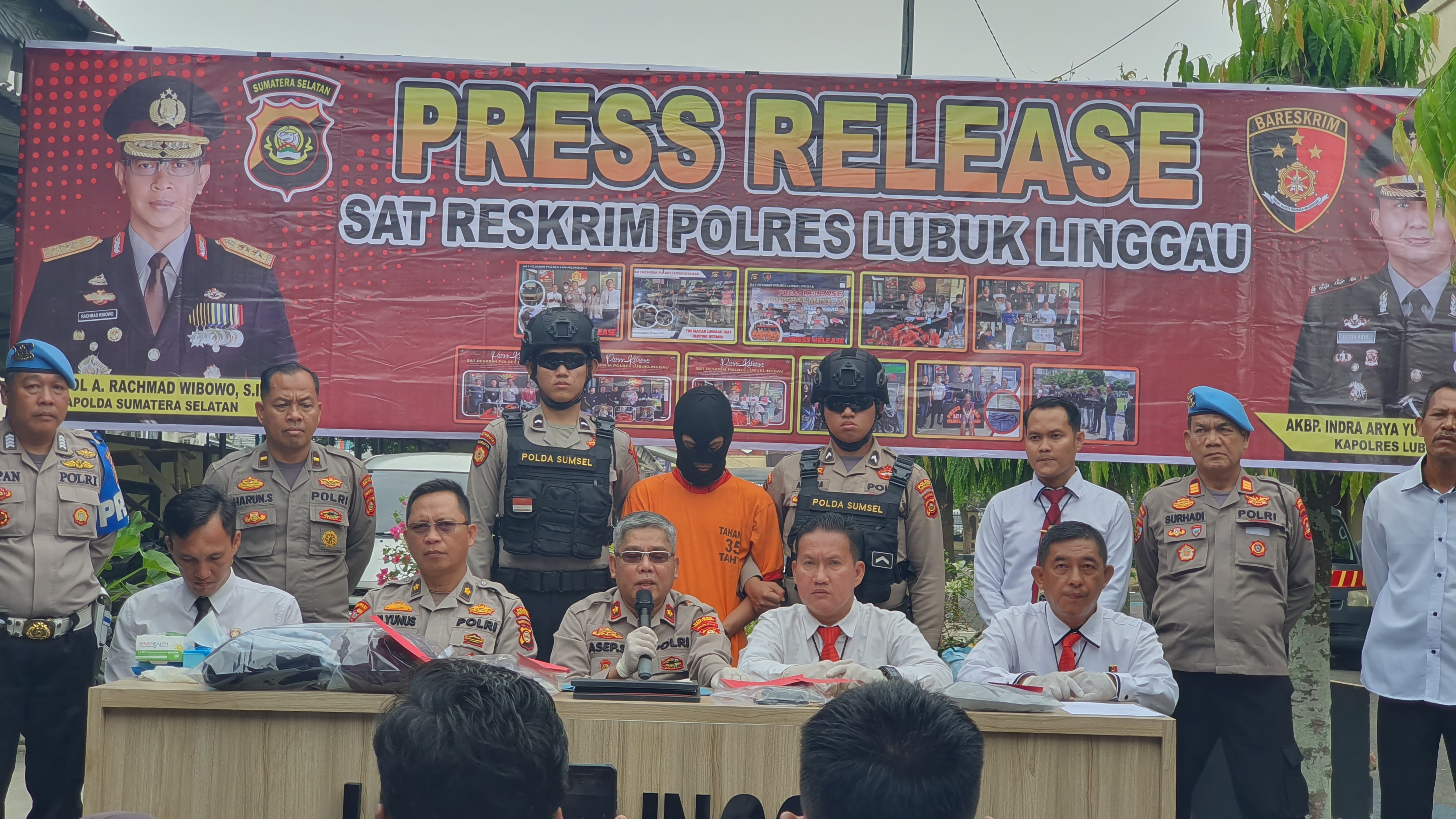Press release yang dipimpin oleh Wakapolres Lubuklinggau Kompol H. Asep Supriyadi mewakili Kapolres Lubuklinggau AKBP Indra Arya Yudha, didampingi Kasat Reskrim dan Kasat Intelkam menjelaskan Setelah mendapatkan laporan dari masyarakat terkait penemuan mayat korban pada hari Jum’at tanggal 08 September 2023 tim gabungan polres Lubuk Linggau langsung melaksanakan serangkaian kegiatan olah Tkp, pengamatan jejak kejahatan yang tertinggal di TKP, pengolahan data scientific crime investigation, pengamatan recognized face.