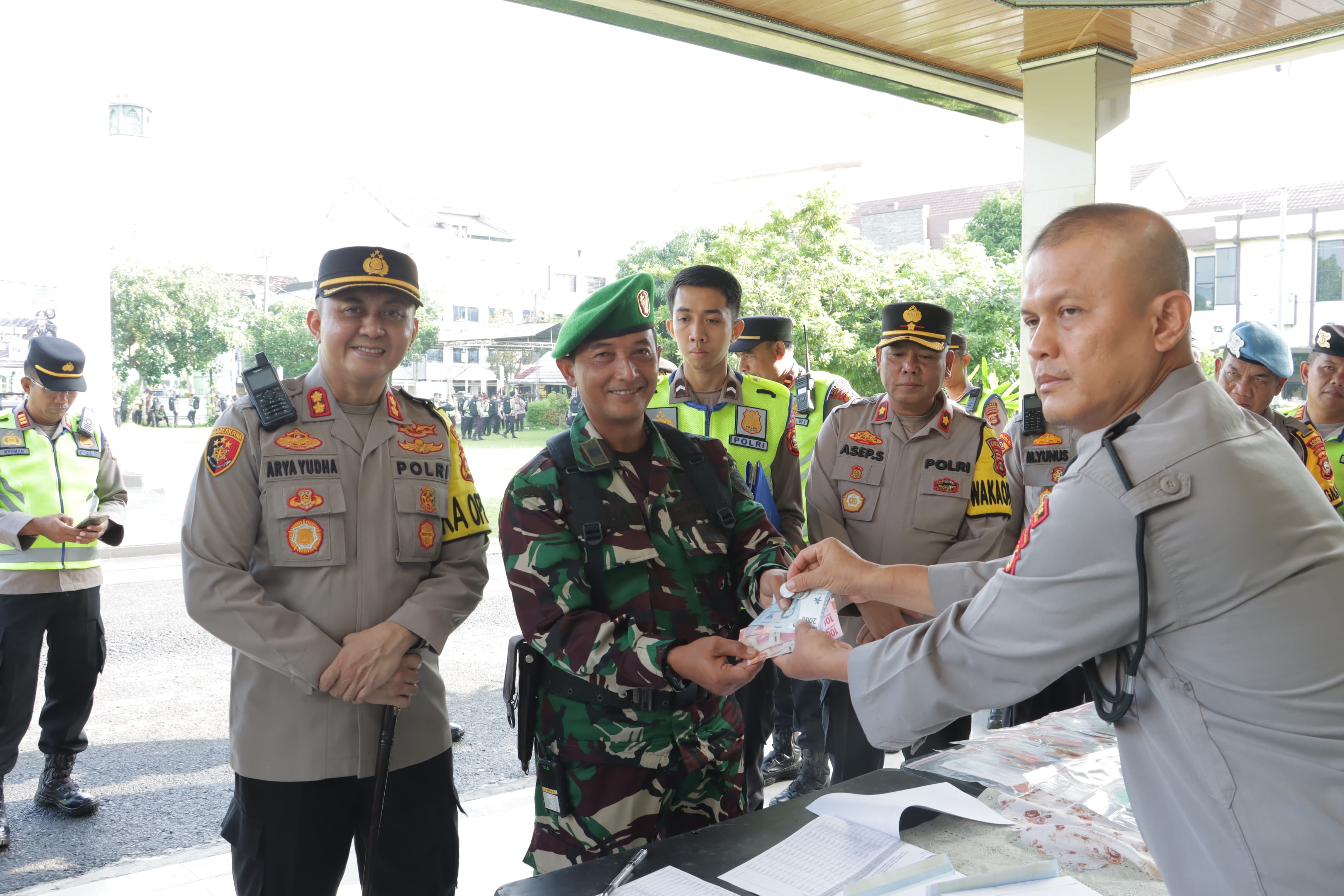 Acara tersebut ditutup dengan pembagian uang saku untuk personel yang melaksanakan pengamanan kegiatan pemungutan suara, serta pemberian BBM Pertamax 6 liter/anggota, vitamin, dan obat-obatan untuk menjaga kesehatan dan kenyamanan selama bertugas.